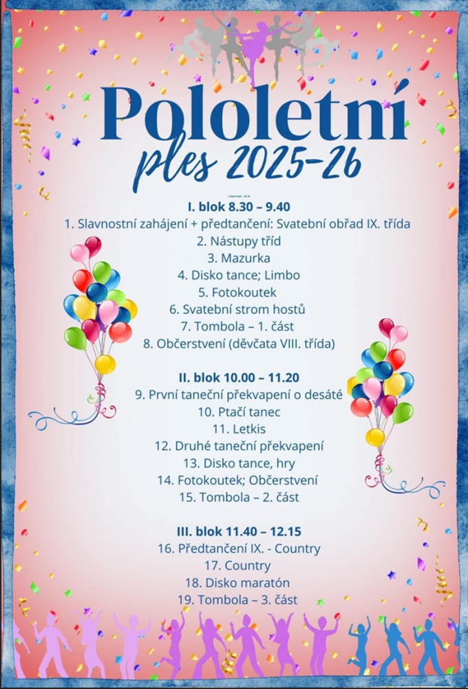 (10.02.2026) Pololetní ples Dne 29.1.2026 se od 8:30 konal v aule základní školy tradiční pololetní ples...více...