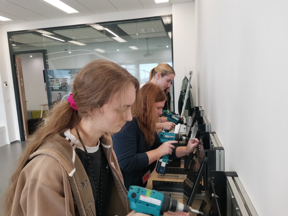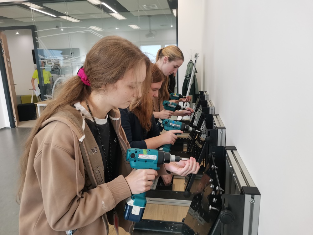 Jedna skupina si šla prohlédnout montáž, další poznávala komponenty vozu nebo šroubovala utahovačkou do tréninkové desky. Vyhledávali jsme taky závady na karosérii, namotávali lano na tréninkovém stole podle postupu nebo virtuálně svařovali. Dařilo se nám i dálkově ovládat motorové vozíky a auta, tvořit 3D perem, zhotovit návrh v programu pro 3D tisk a velkým zážitkem byla prohlídka elektrovozu.