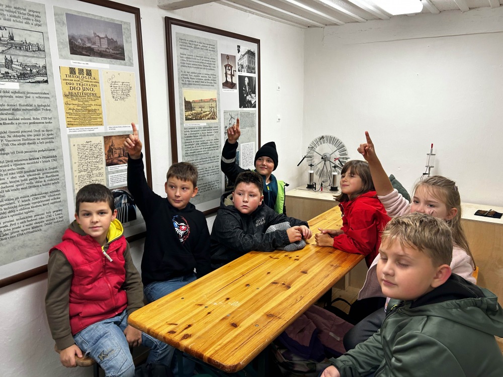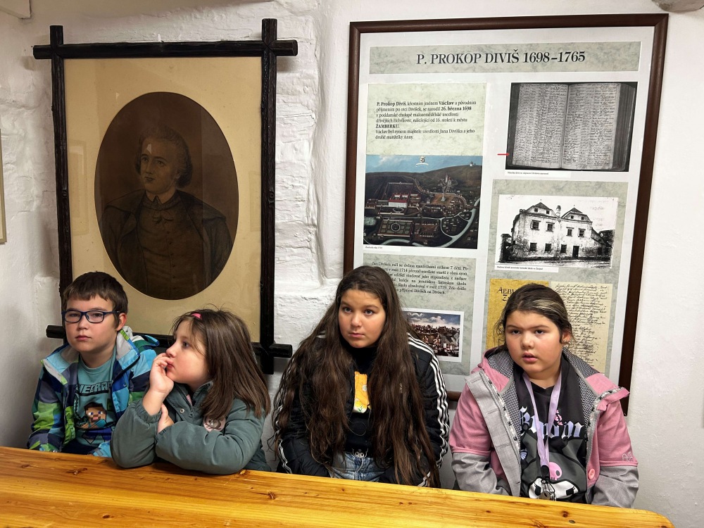 V úterý 7. října 2025 se žáci 3. B vydali na exkurzi do Žamberka. V dobově vybaveném roubeném domku s výstavou věnované vynálezci bleskosvodu Prokopu Divišovi je přivítali dva zaměstnanci žambereckého muzea. Poutavým způsobem dětem přiblížili život samotného Prokopa Diviše, vysvětlili jim jakým způsobem vzniká statická energie a jak funguje bleskosvod, který je umístěn venku před domkem.