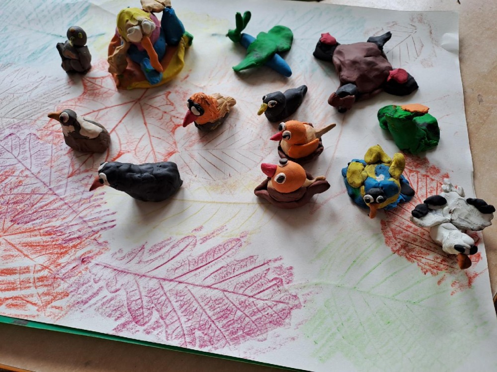 Ráno jsme si přivstali, přejeli hory a v 8.00 už jsme byli u budovy Schule v Šedivinách. S batohy na zádech a s dalekohledy na krku jsme vyšlápli do kopce na pozorování a monitoring ptactva. Slyšeli jsme zpívat brhlíha a králíčka - našeho nejmenšího ptáčka. Někdo měl štěstí a v korunách smrkového větrolamu ho i spatřil. Na obloze jsme viděli sojku, krkavce a káně, poštolka seděla na drátech, hýl byl viděn v kopřivách, sýkora uhelníček na smrku nedaleko Šedivinského kostelíku. Pan Šreibr nás vzal k velkým sítím na dravce. A Filip Laštovic z Doberské organizace A Rocha měl pro účastníky připravené kvízové a praktické úkoly, např. poznávání ptačího zpěvu či ptáků podle peří. Do sítí se pro tentokrát nic nechytlo, tak jsme si alespoň ptáčka dotvořili...vymalovali sádrového. Na závěr se opékaly buřty, povídalo se o zážitcích z přírody, fotily se výrobky. Prostě PRIMA sobotní dopoledne.