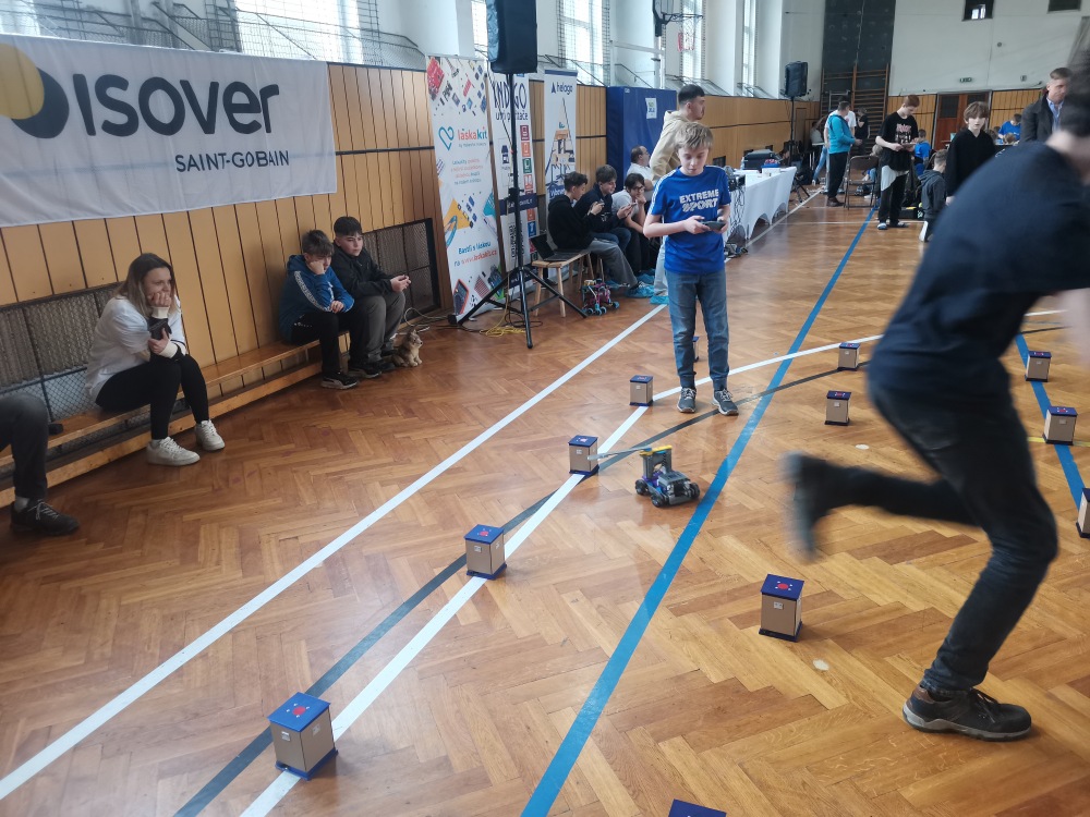 Ve středu 25.3. jsme s roboty, které jsme postavili, soutěžili v orientačním běhu v soutěži Robotrack, kterou pořádá Technologický klub Albrechtice nad Orlicí (TÉKÁČKO). Úkolem robota je dojet (nejkratší cestou a co nejrychleji) k rozsvícené kontrole, zaznamenat průjezd kontrolou čipovou kartou na čtečce a jet k další kontrole (ze šesti).