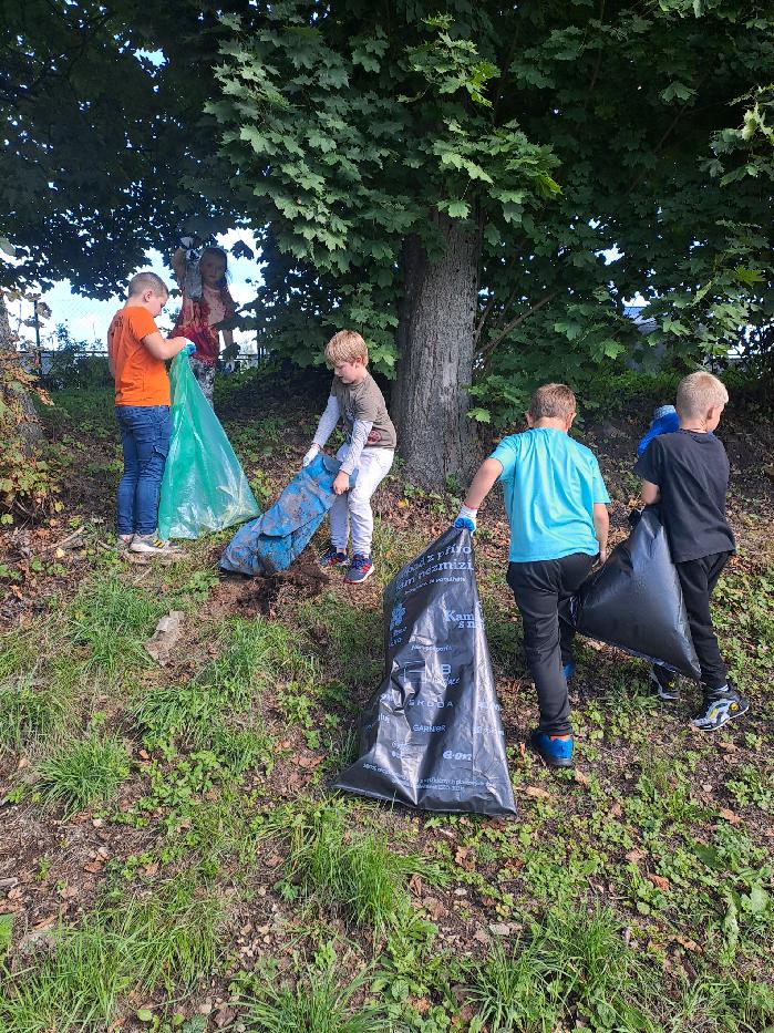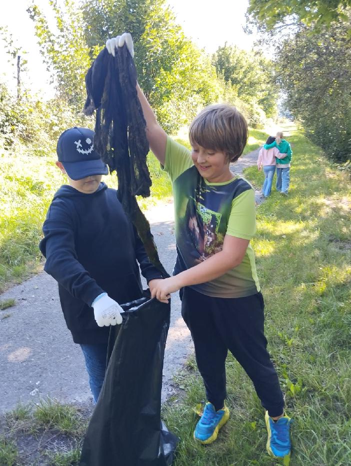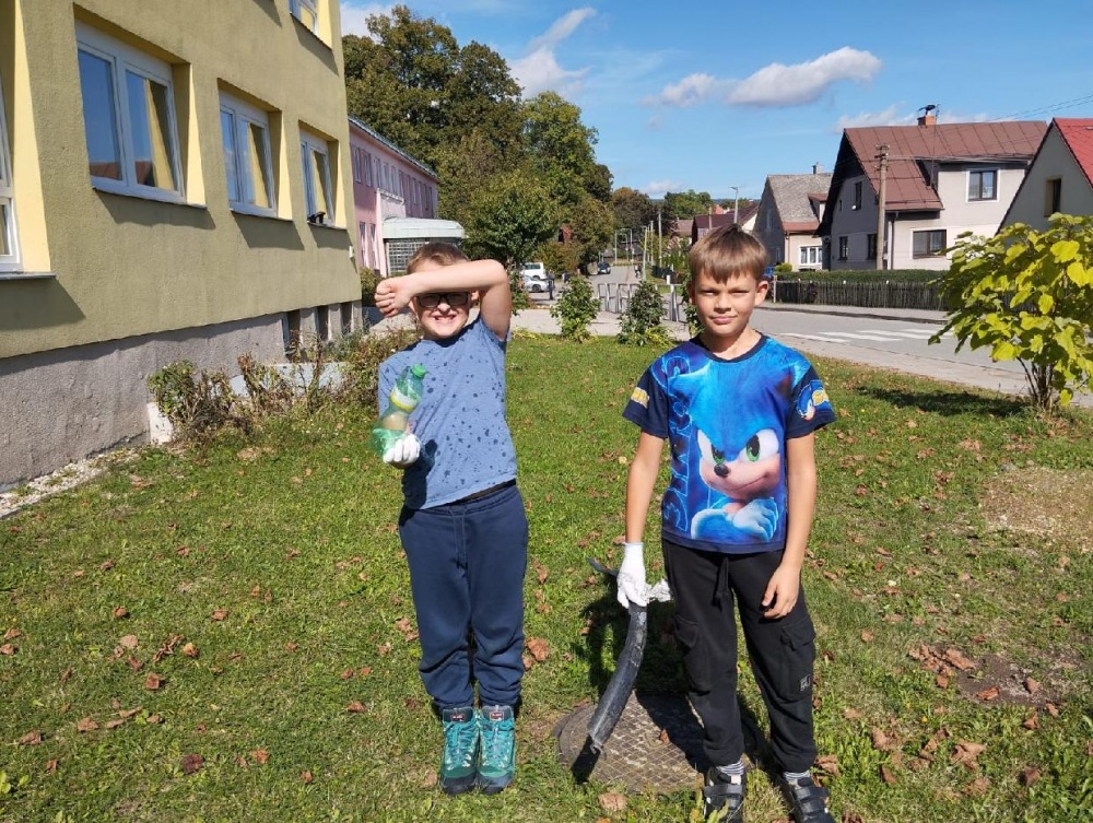 Jako první vyrazili do terénu v pátek 19. září 2025 dva žáci 9. tř. s paní asistentkou Káťou. V rámci odpolední činnosti ve školní družině se k úklidu přidalo 36 dětí ze všech oddělení. Vydaly se uklízet místa, kde si rády hrají. A tak se uklízelo v zámeckém parku, okolo hřiště a u křídlatky. Ke kuriózním nálezům pro tentokrát patřila lopata, lyžařská hůlka, batoh, celý sešlápnutý odpadkový koš,...dále pak chumle drátů, kusy lepenky, plechovky a lahve od nápojů,...