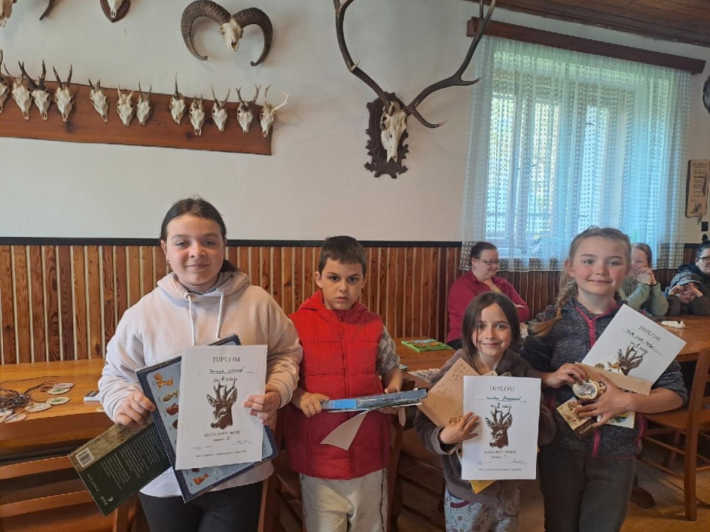Gratulujeme! Děkujeme za klidný a příjemný slunečný den, za zvídavost dětí a touhu bádat, za radost z objevování nového, za společné setkávání. Děkuji odborníkům z praxe, myslivcům, Hance Pavlištové a Luďkovi Skalickému. Poděkování patří i pomocníkům z řad absolventů kroužku: Radimu Tomanovi, Lucce Vávrové, Táně Vošvrdové a Hynkovi Holendovi. Jste pro děti vzorem a myslím, že i vhodnou motivací. Díky.
